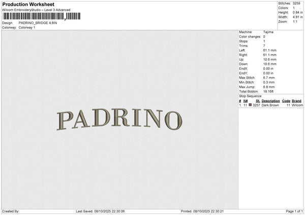 PADRINO Embroidery File 6 sizes