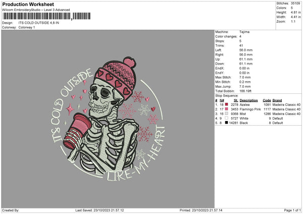 Pink Skull Embroidery File 6 sizes