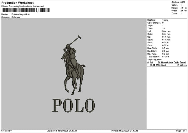 Polo1807 Embroidery File 6 sizes