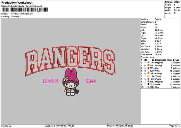 Rangerstext Melo Embroidery File 6 sizes