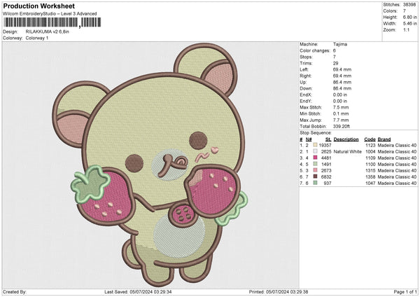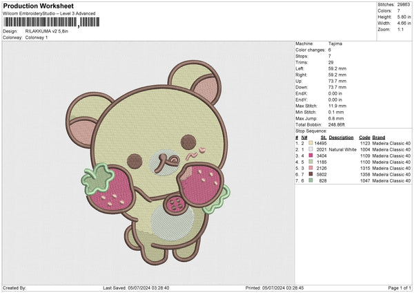 RILAKKUMA v2 Embroidery File 6 size