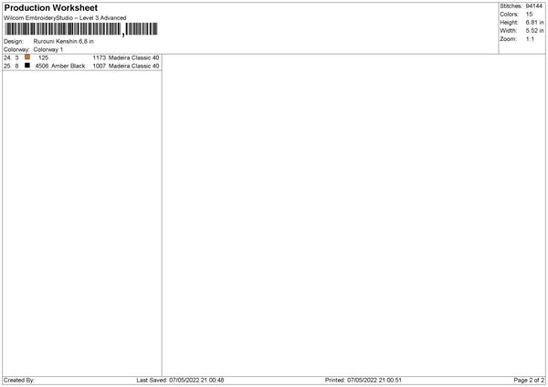 Rurouni Kenshin Embroidery File 4 size