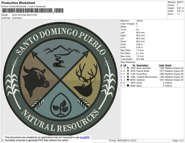 Santo Domingo Patch Embroidery File 6 size