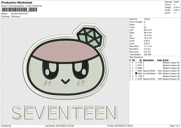 SEVENTEEN Embroidery File 6 size