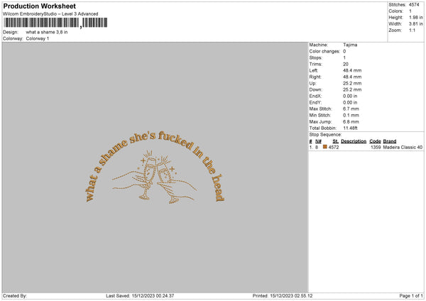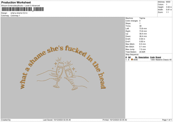 Shame Text Embroidery File 6 sizes