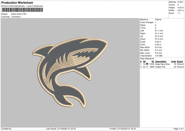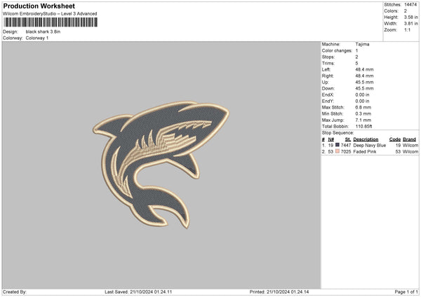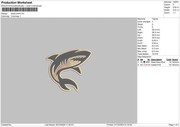 Shark 01 Embroidery File 6 sizes