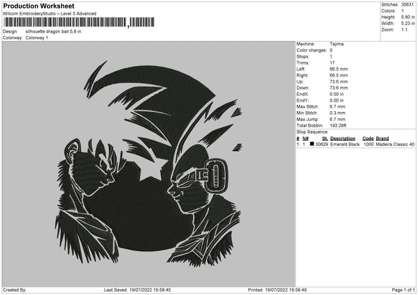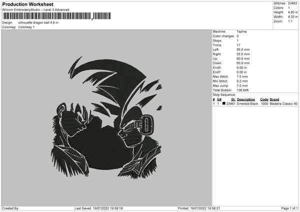 Silhouette Dragon Ball Embroidery File 4 sizes