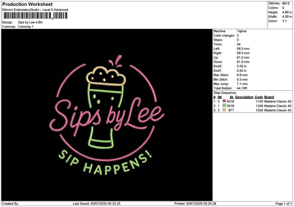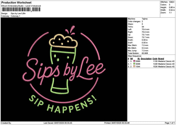 Sipstext Embroidery File 6 sizes