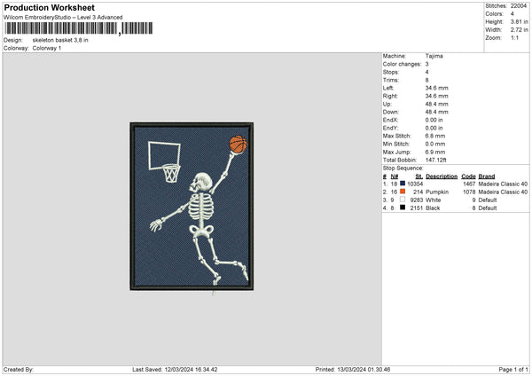 Skeleton 1302 Embroidery File 6 sizes
