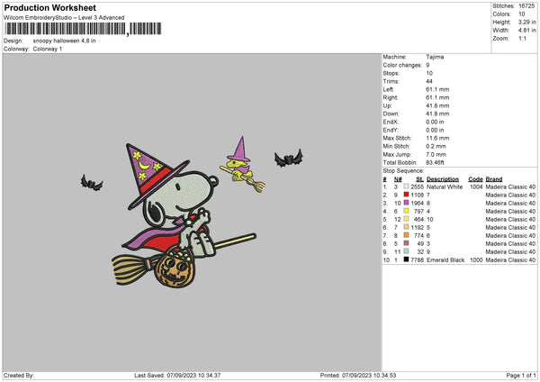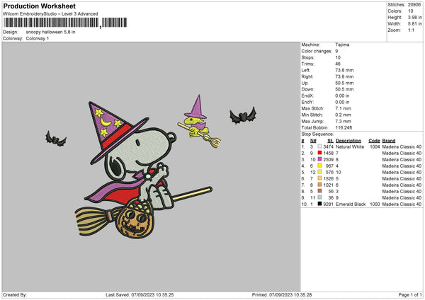 Snoopy Halloween 23 Embroidery File 6 sizes