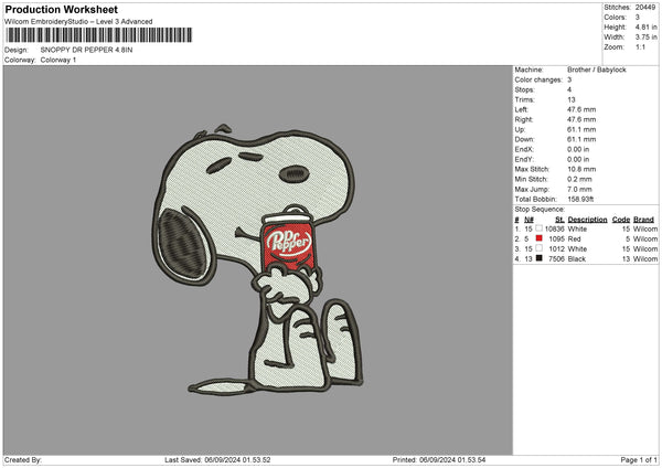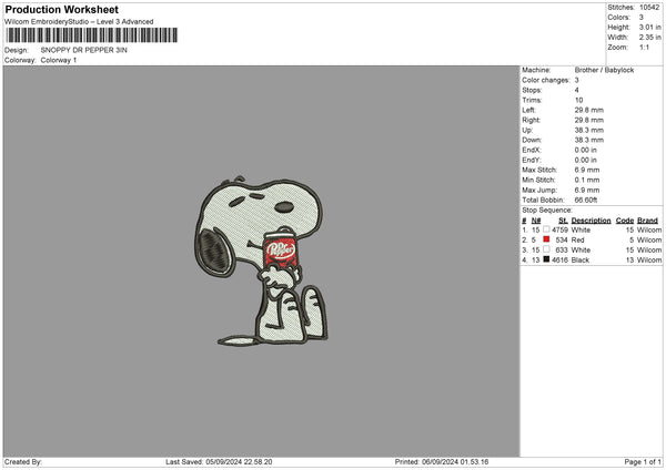Snoopy Papper Embroidery File 6 sizes