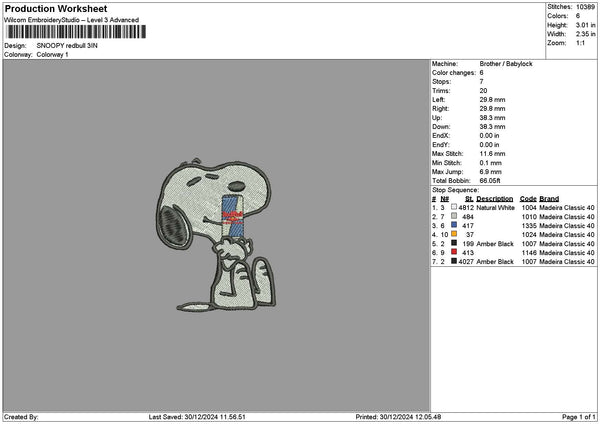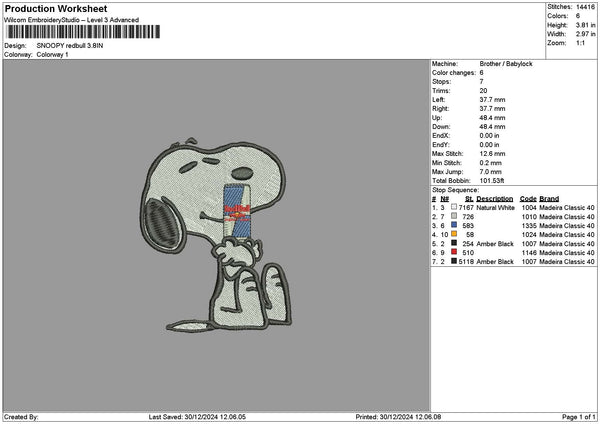 Snoopy Redbull 03 Embroidery File 6 sizes