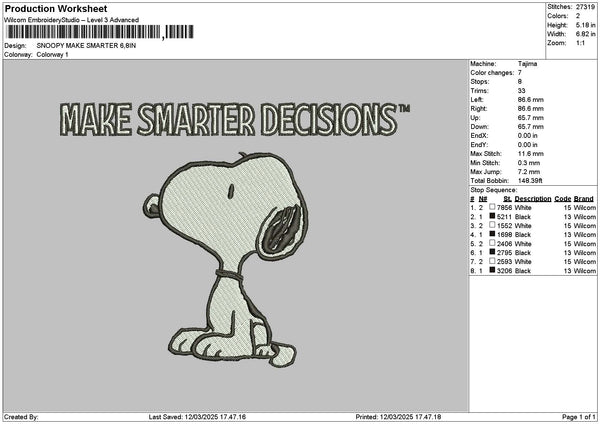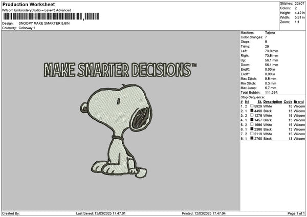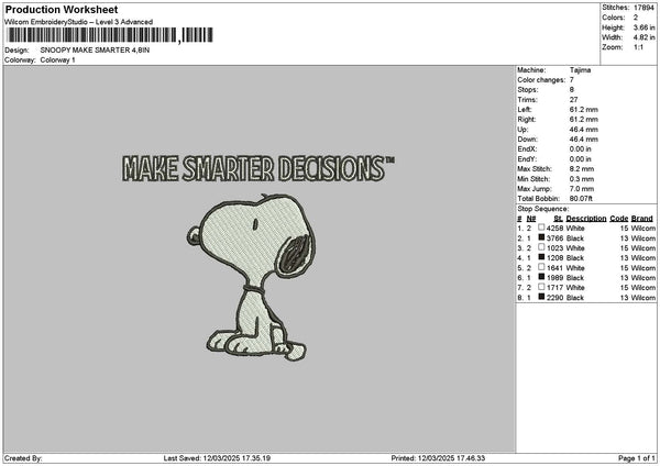 Snoopy Smarter Embroidery File 6 sizes