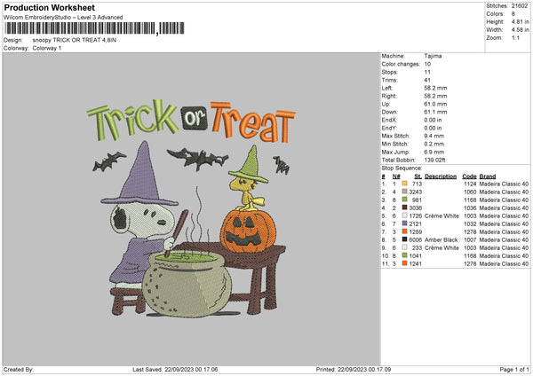 Snoopy Trick T Embroidery File 6 sizes