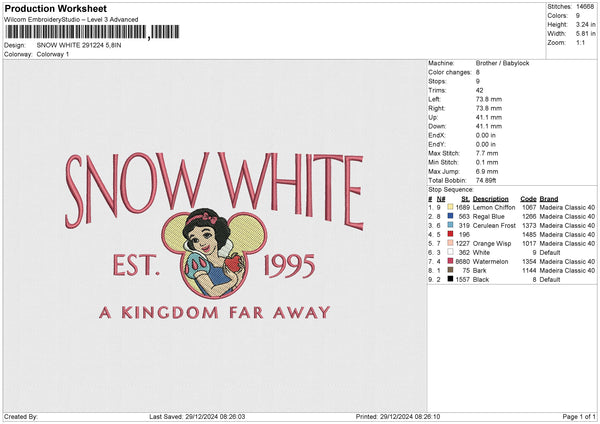 SNOW WHITE 291224 Embroidery File 6 size