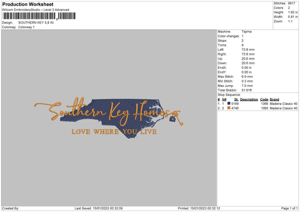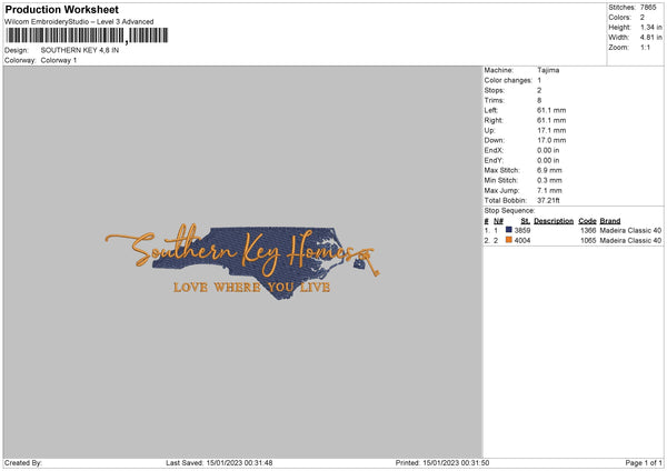 Southern Key Embroidery File 9 sizes