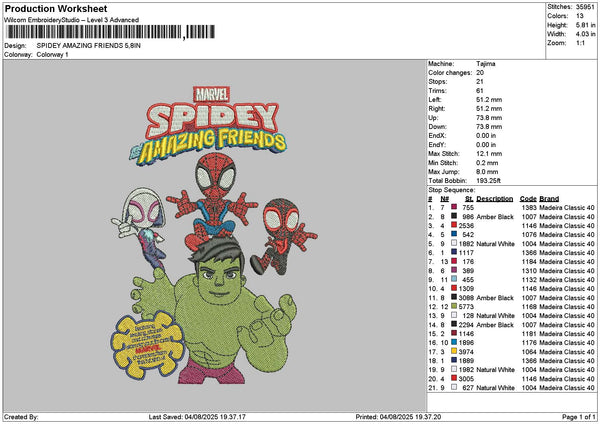 Spidey0408 Embroidery File 6 sizes