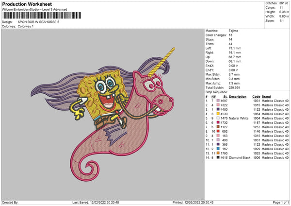 Spongebob Seahorse Embroidery File 4 size