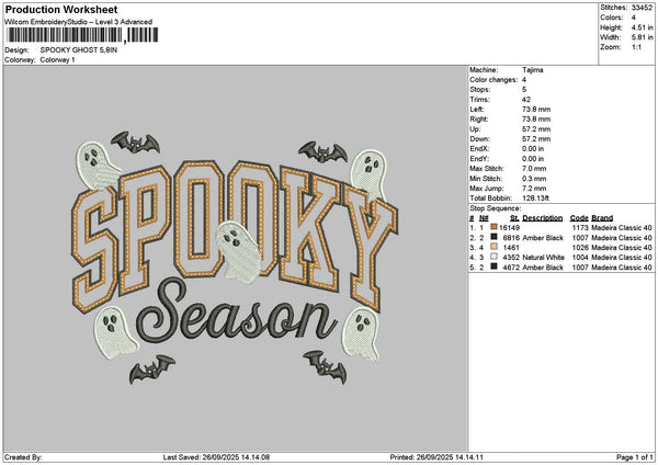 Spooky Ghost 2609 Embroidery File 6 sizes