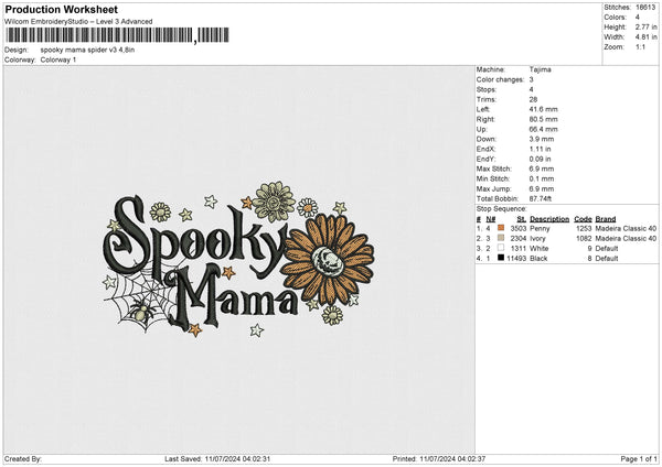 Spooky mama spider v3 Embroidery File 6 size