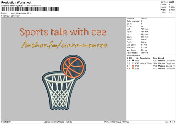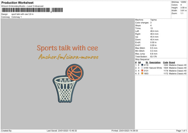Sport Talk Embroidery File 6 sizes