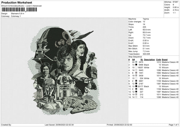 Starwars v4 Embroidery File 6 size