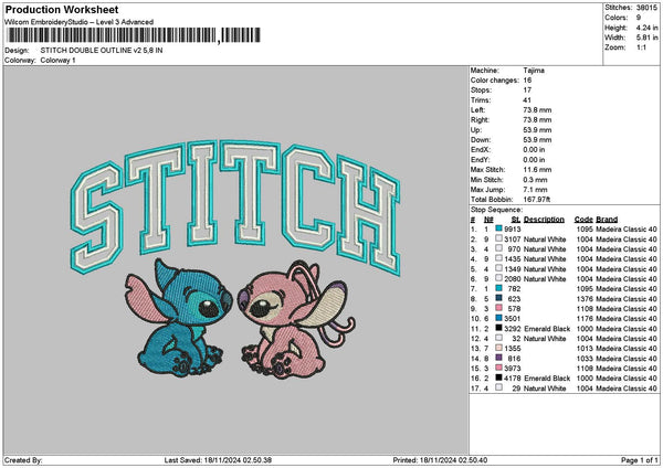 Stitch Double Outline V2 Embroidery File 6 sizes