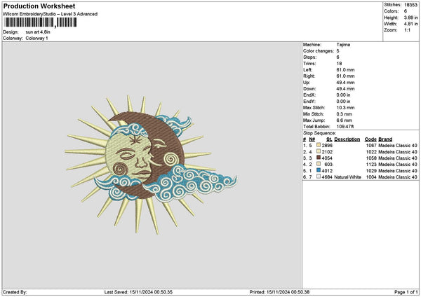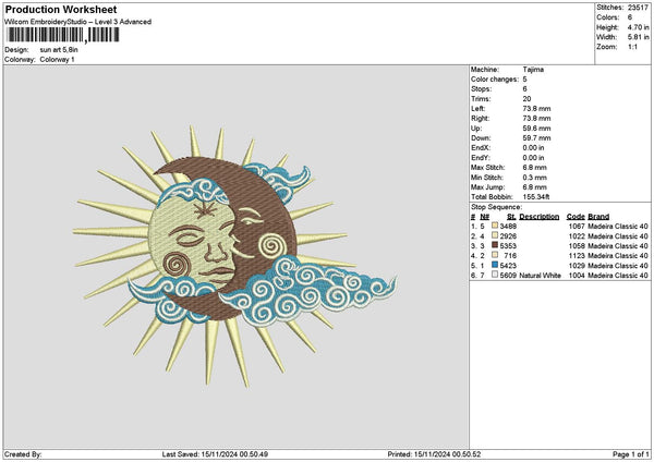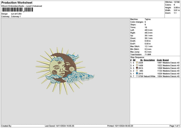 Sun1511 Embroidery File 6 sizes