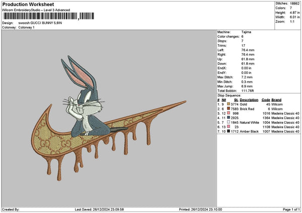 Swoosh Bunny Melt 01 Embroidery File 6 sizes