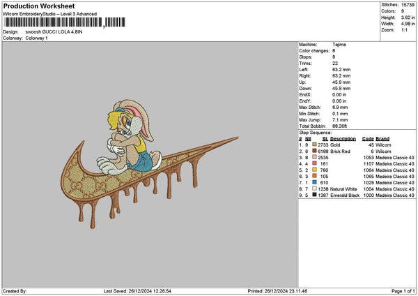 Swoosh Bunny Melt 02 Embroidery File 6 sizes