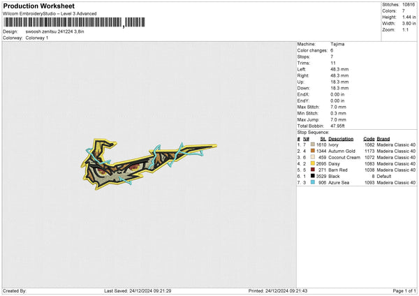 Swoosh Zenitsu 241224 Embroidery File 6 size