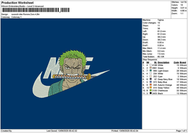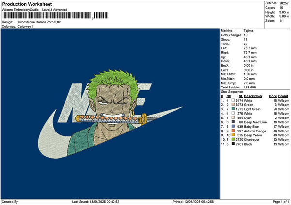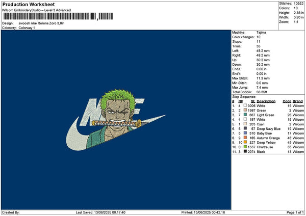 Swoosh Zoro Embroidery File 6 sizes