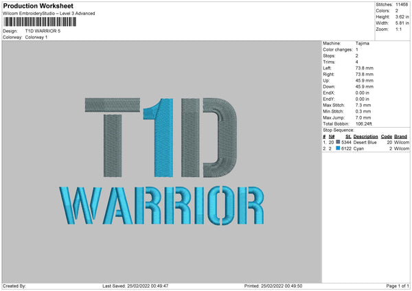 T1D Warrior Embroidery File 4 size