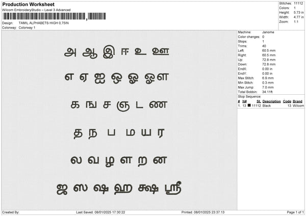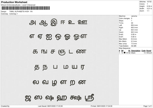 TAMIL ALPHABETS HIGH Embroidery File 6 size