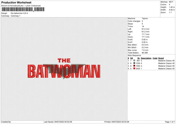The batwoman Embroidery File 6 size