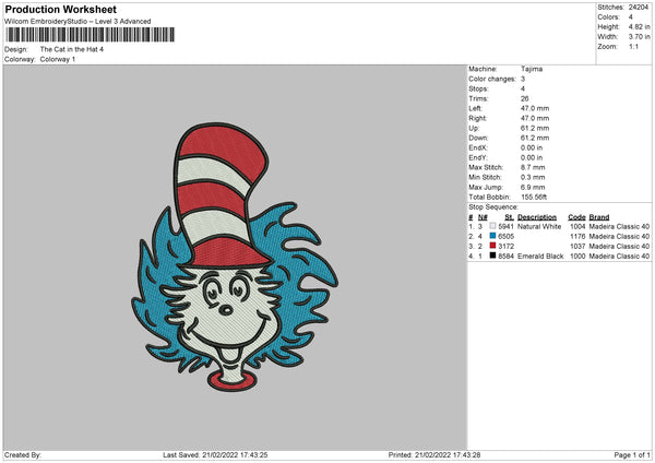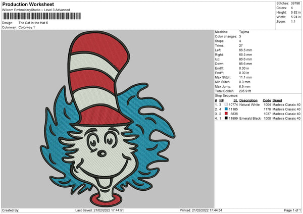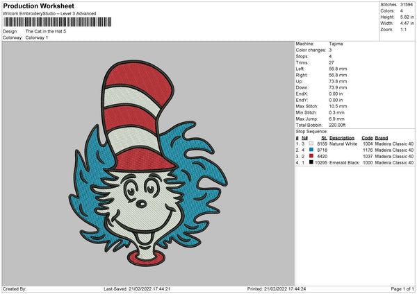 The Cat In The Hat Embroidery File 4 size