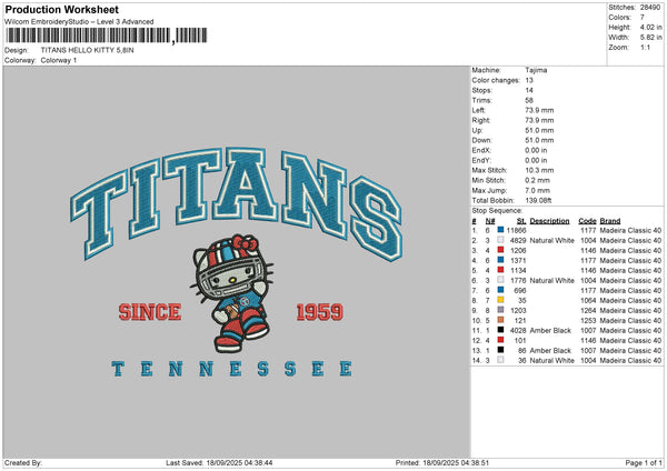 TITANS HELLO KITTY Embroidery File 6 sizes