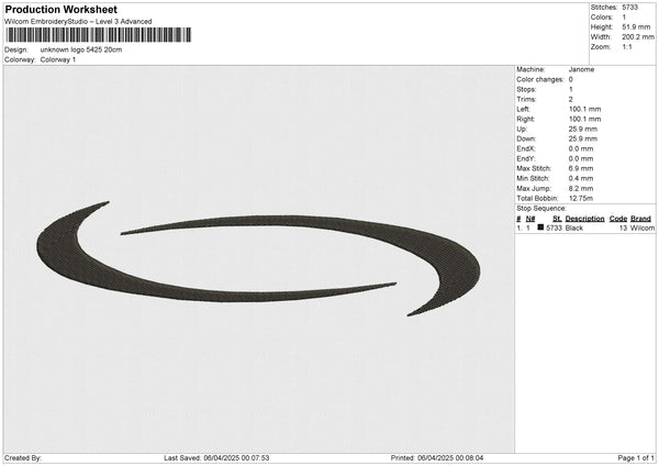 Unknown Logo 5425 Embroidery File 6 size