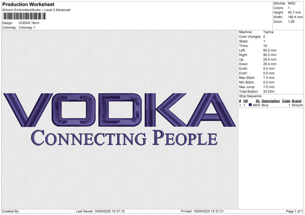 VODKA Embroidery File 6 size