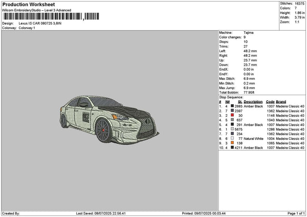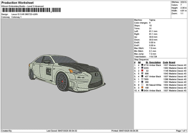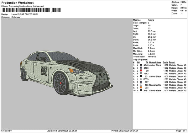 White Car 0807a Embroidery File 6 sizes