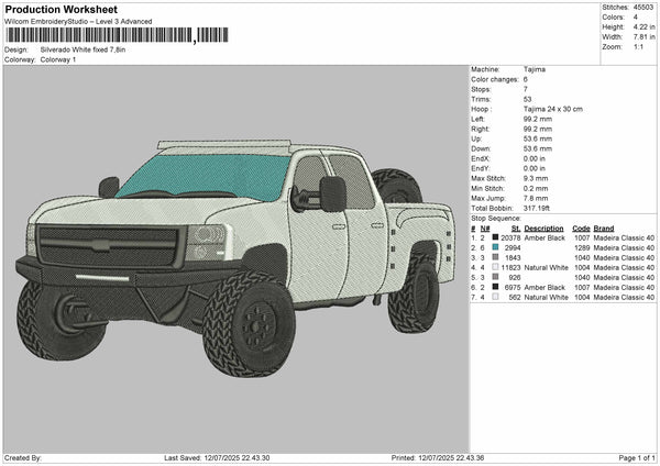 White Truck 0907 Embroidery File 6 sizes