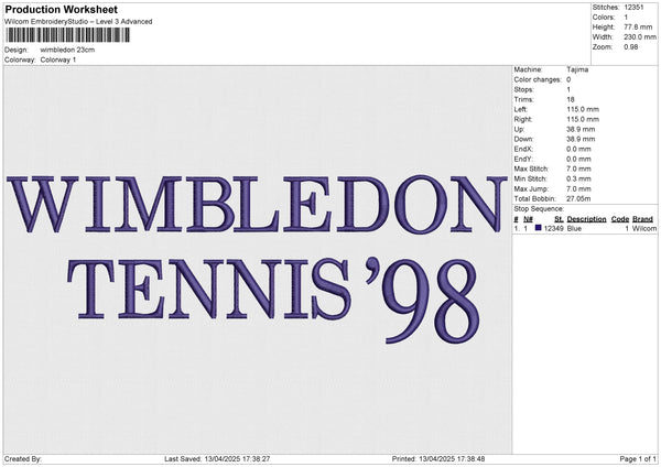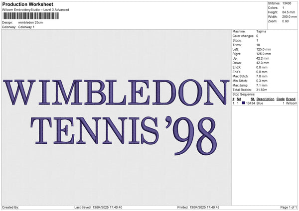 wimbledon Embroidery File 6 size