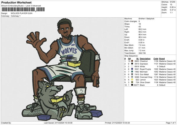WOLVES PLAYER Embroidery File 6 size