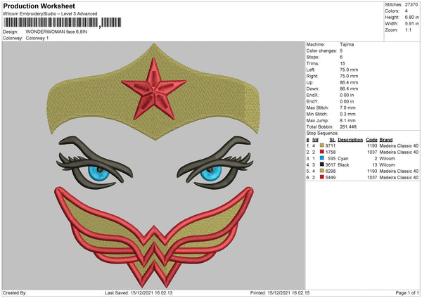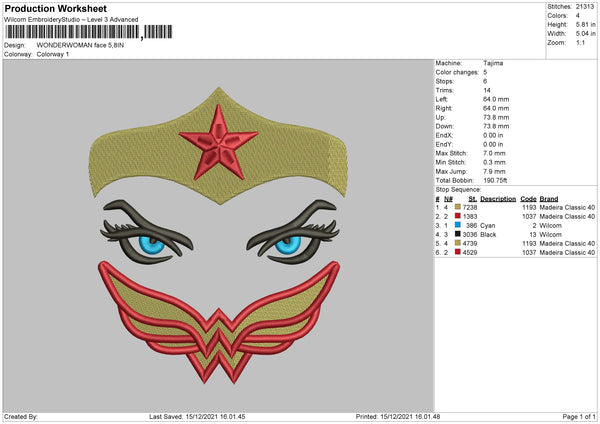 Wonder Woman Face Embroidery File 4 size