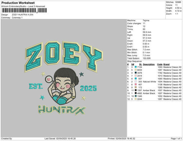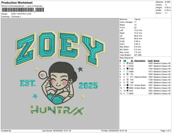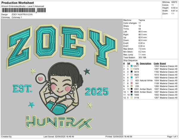 ZOEY HUNTRIX Numbers Embroidery File 6 sizes