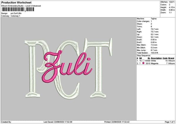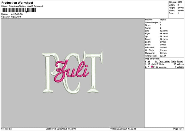 Zulitext Embroidery File 6 sizes